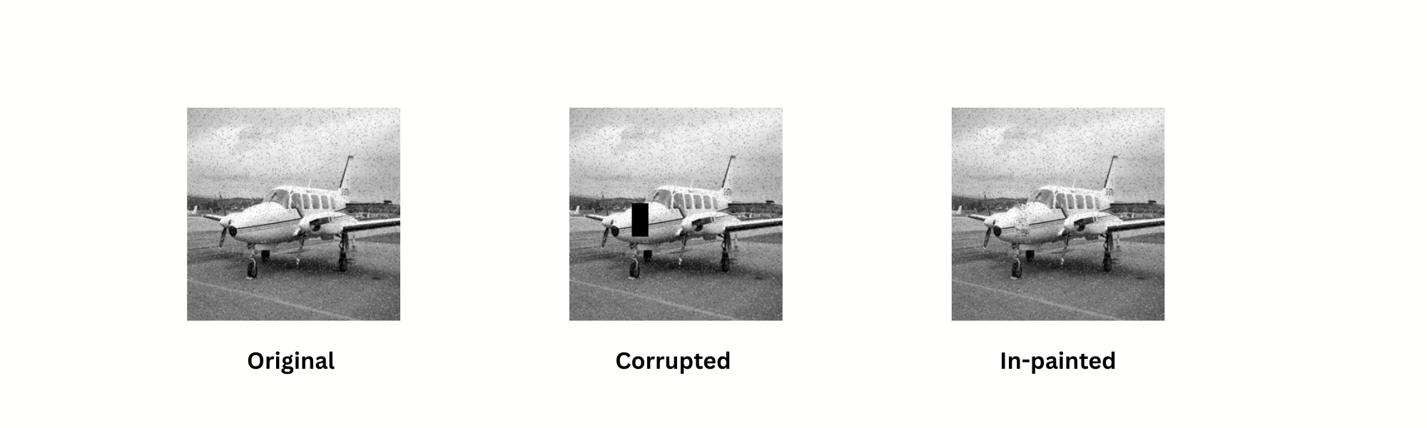Denoising and Inpainting of corrupted images using only architectural priors.